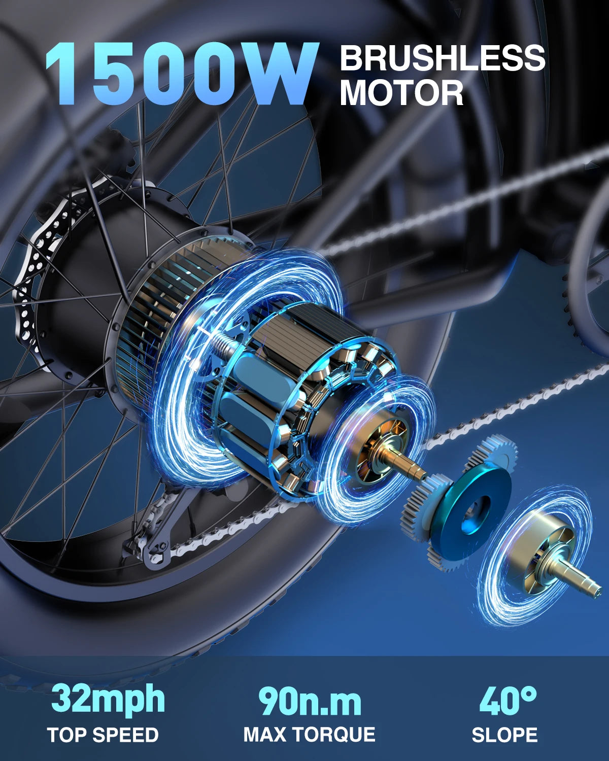 Prepare for an exhilarating ride with our e bike designed for adults. It is equipped with two robust Peak 1500W motor(total peak 3000W). With an impressive 90 Nm torque, it offers excellent climbing strength and effortlessly accelerates to a top speed of 35 MPH. Experience the freedom and excitement as you feel the wind in your hair, making every ride an adventure