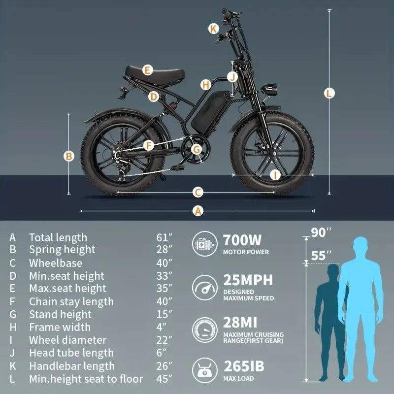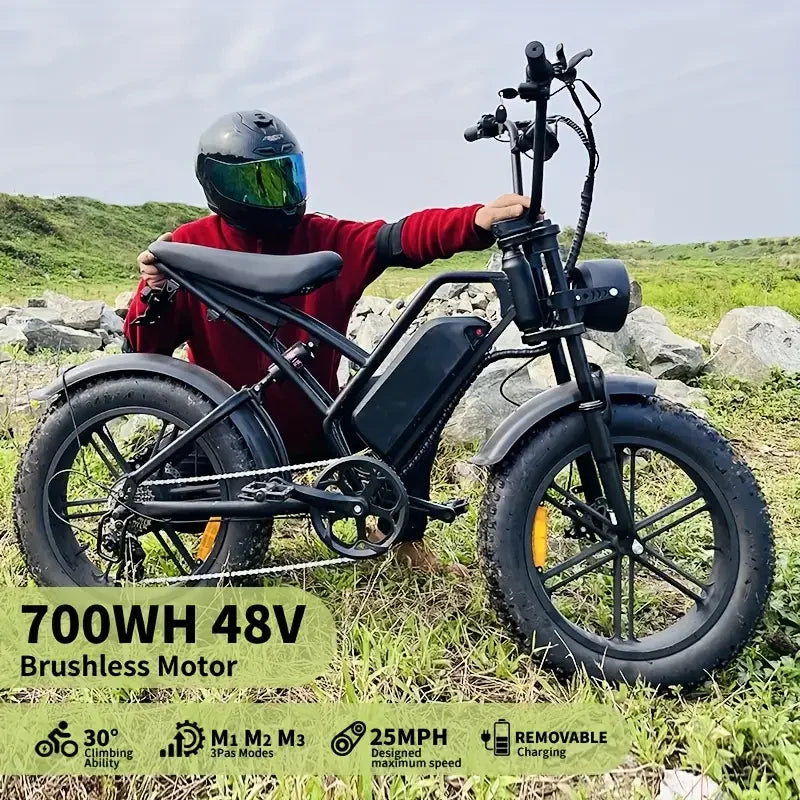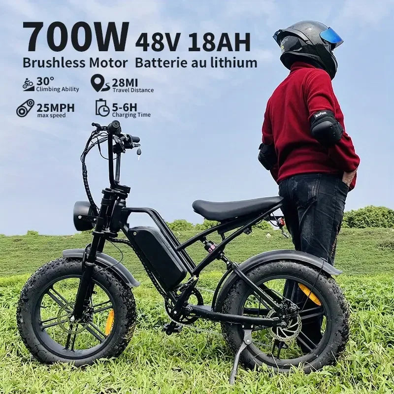 48V/18AH Battery 700W Motor, 20" Fat Tire Electric Bike