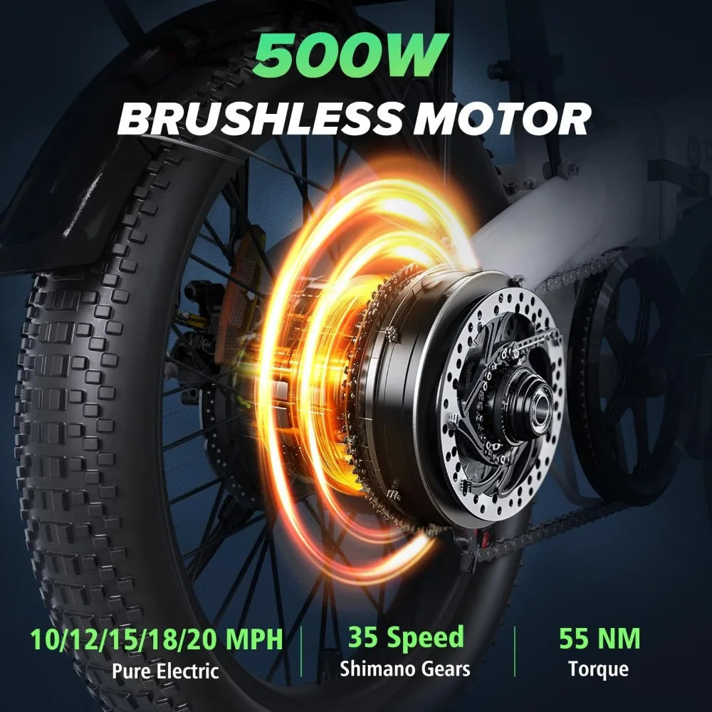 Powerful Riding Performance:Conquer any terrain with ease with powerful 500W(Peak 800W) motor and robust 20" fat tire. Experience exhilarating acceleration up to 20mph and enjoy a smooth ride on various surfaces, from city streets to off-road trails. Enjoy long-distance riding with the 48V 7.8Ah lithium-ion battery, allowing for up to 50 miles on pedal assist mode. Our commitment to safety has been recognized by SGS through certifications UL 2849 (for the whole e bike)