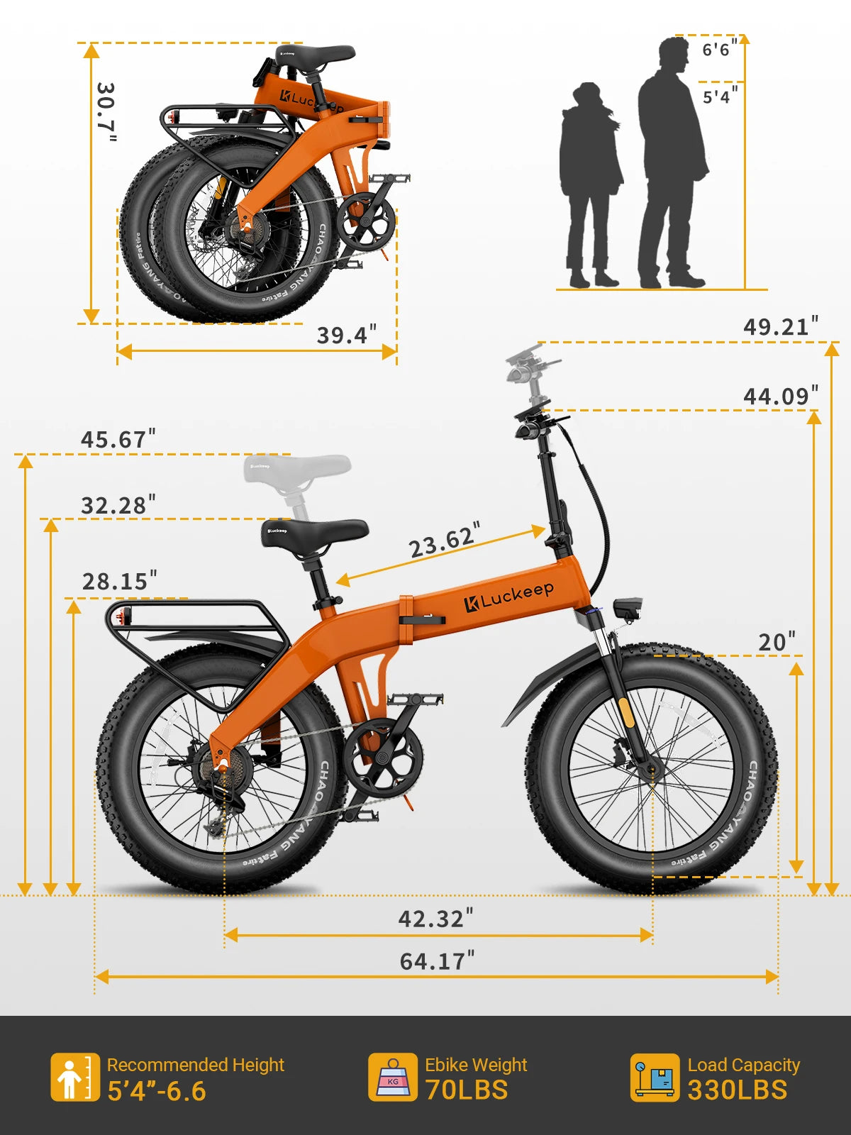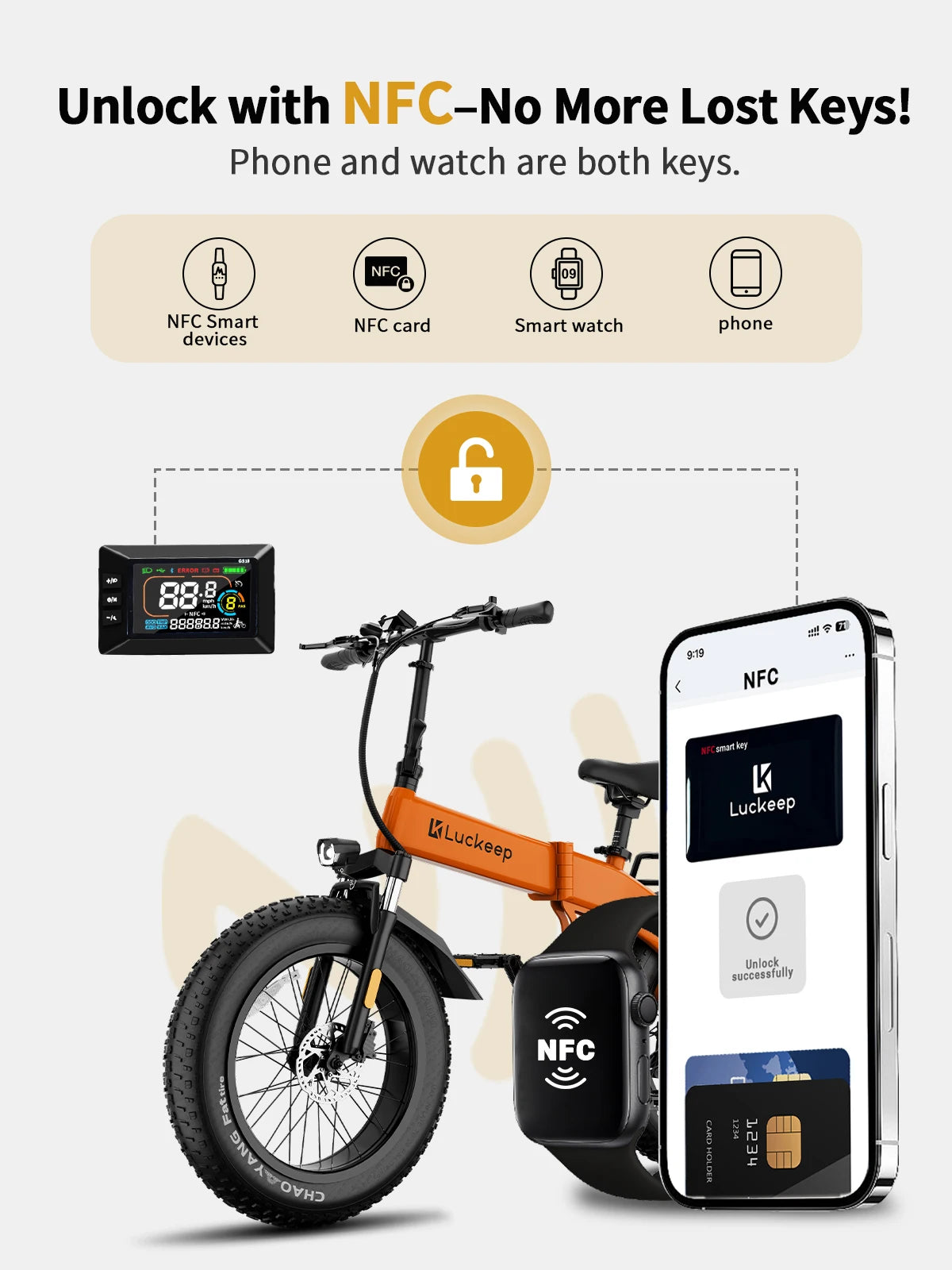 ๐๐ ๐ ๐๐๐๐๐๐ & ๐๐๐๐๐๐๐๐๐ ๐๐๐๐๐๐ ๐๐๐๐๐: Unlock your foldable ebike effortlessly with our advanced NFC technology โ compatible with smartphones, smart watch, and other NFC devices. Switch between 4 riding modes (Cruise, Pure Electric, PAS, and Regular Bike) with 5 Assistance Levels for tailored support. Cruise Control and twist throttle help manage speed effortlessly for the smoothest ride, and the anti-theft system deters theft.Rider Height: 5'4"-6'4".