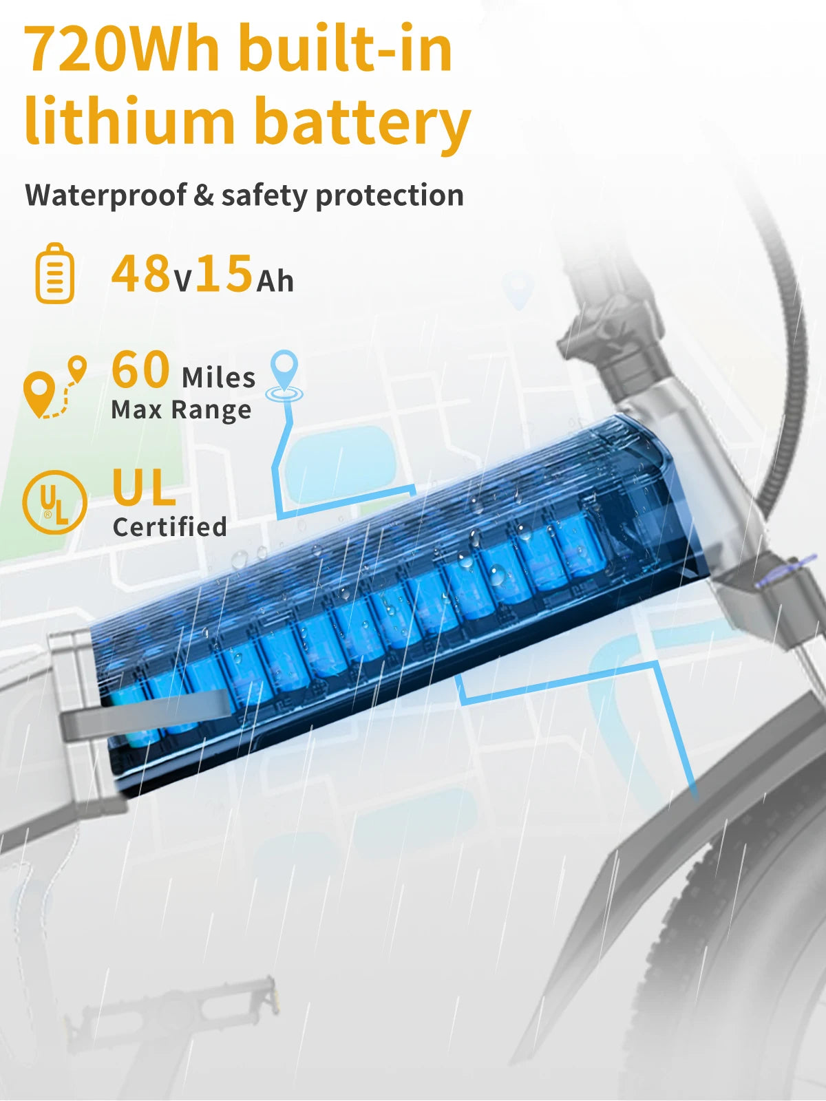 ๐ฐ๐ด๐ฉ/๐ญ๐ฑ๐๐ (๐ณ๐ฎ๐ฌ๐ช๐) ๐๐๐ง๐๐๐จ๐ -๐๐๐ง๐ง๐๐ฅ๐ฌ: Enjoy long-distance riding with the 48V 15Ah lithium-ion battery, allowing for up to 60 miles on pedal assist mode per charge for 5-6 hours. The bicicleta elรฉctrica is equipped with the BMS system that provides 14 types of protection, making our battery safer and more cycle life. E bike have two charging methods, remove the battery to charge or directly charge the bike, perfect for your daily commute or travel.